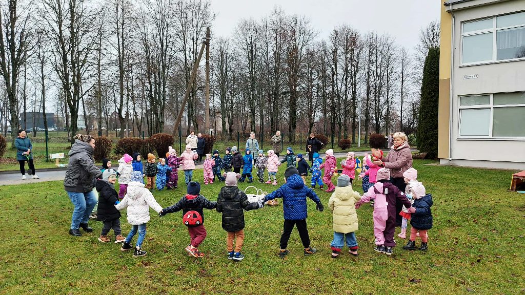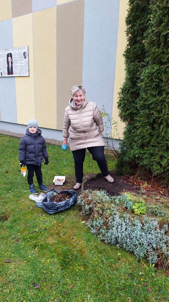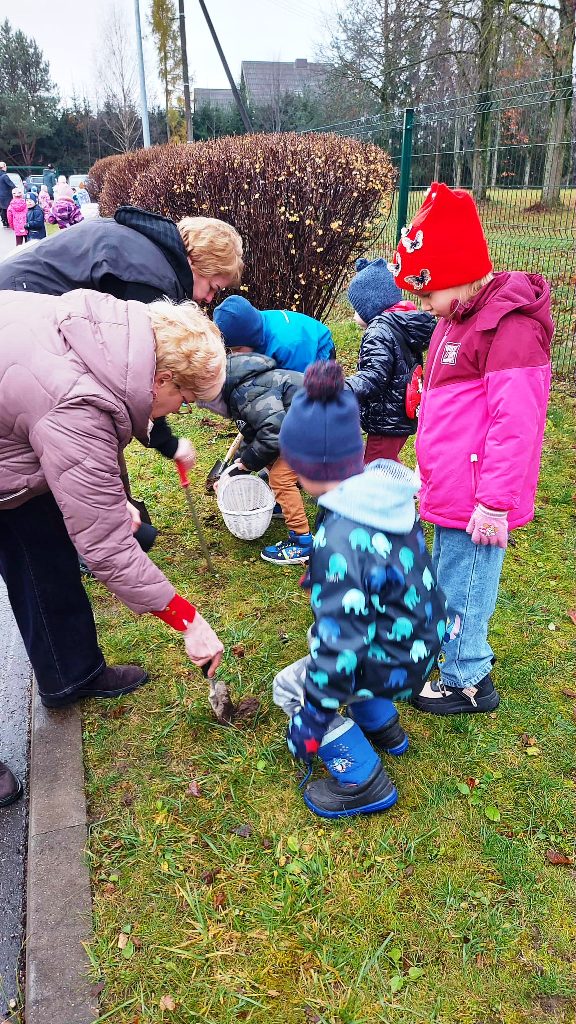 Ikimokyklinių grupių vaikai prisijungė prie kasmetinės akcijos „Žydintis kiemas”. Šios akcijos tikslas – ugdyti draugišką požiūrį į gamtą ir skatinti stebėti aplinką. Į akcijos įgyvendinimą buvo įtraukti ir tėvai, kurie kartu su vaikais atsinešė gėlių svogūnėlius. Užsiėmimų metu vaikai susipažino, kaip atrodo tikri tulpių, hiacintų, narcizų ir krokų svogūnėliai. Sodinimo darbai prasidėjo linksmai. Vaikai dainavo daineles apie gėlių sodinimą ir šoko rateliuose. Vėliau, geros nuotaikos vedini ir padedami tėvų, ėmėsi darbo. Kiekvienas akcijos dalyvis buvo įsitraukęs ir susidomėjęs. Sodinimo darbai jau baigti – dabar galime ramiai laukti pavasario, kad galėtume grožėtis gražiomis gėlėmis.