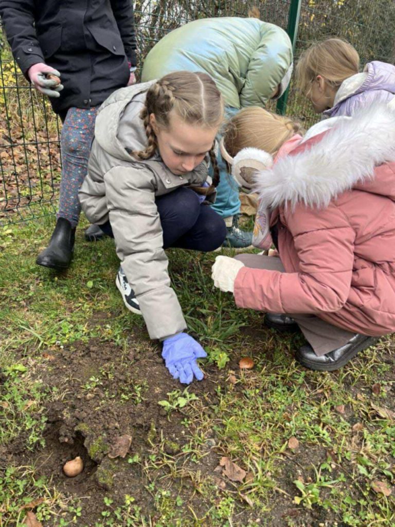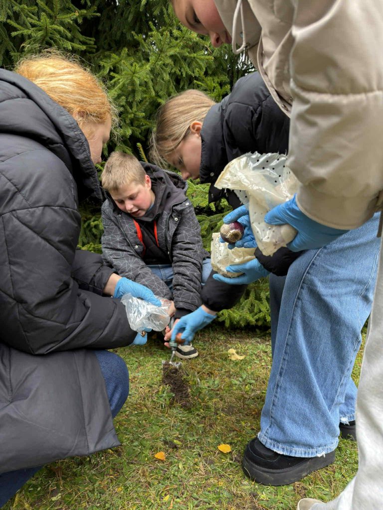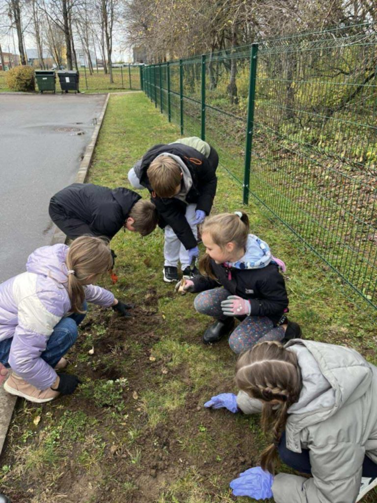 Mūsų mokykloje tradiciškai organizuojama akcija „Žydintis mokyklos kiemas“. Visų klasių mokiniai per pertraukas sodino pavasarinių gėlių svogūnėlius, tokius kaip tulpės ir narcizai. Pasiruošimas šiai akcijai visada prasideda ankstyvą rudenį – mokiniai ruošia pavasarinių gėlių svogūnėlius, kurie papuoš mokyklos kiemą. Vaikai noriai dalyvauja sodinimo darbuose, padėdami vieni kitiems. Visi laukia pavasario, kad pamatytų bendro darbo rezultatus. Atėjus pavasariui pasirodo pirmieji pumpurai, o visa mokyklos bendruomenė gali grožėtis spalvingomis gėlėmis.