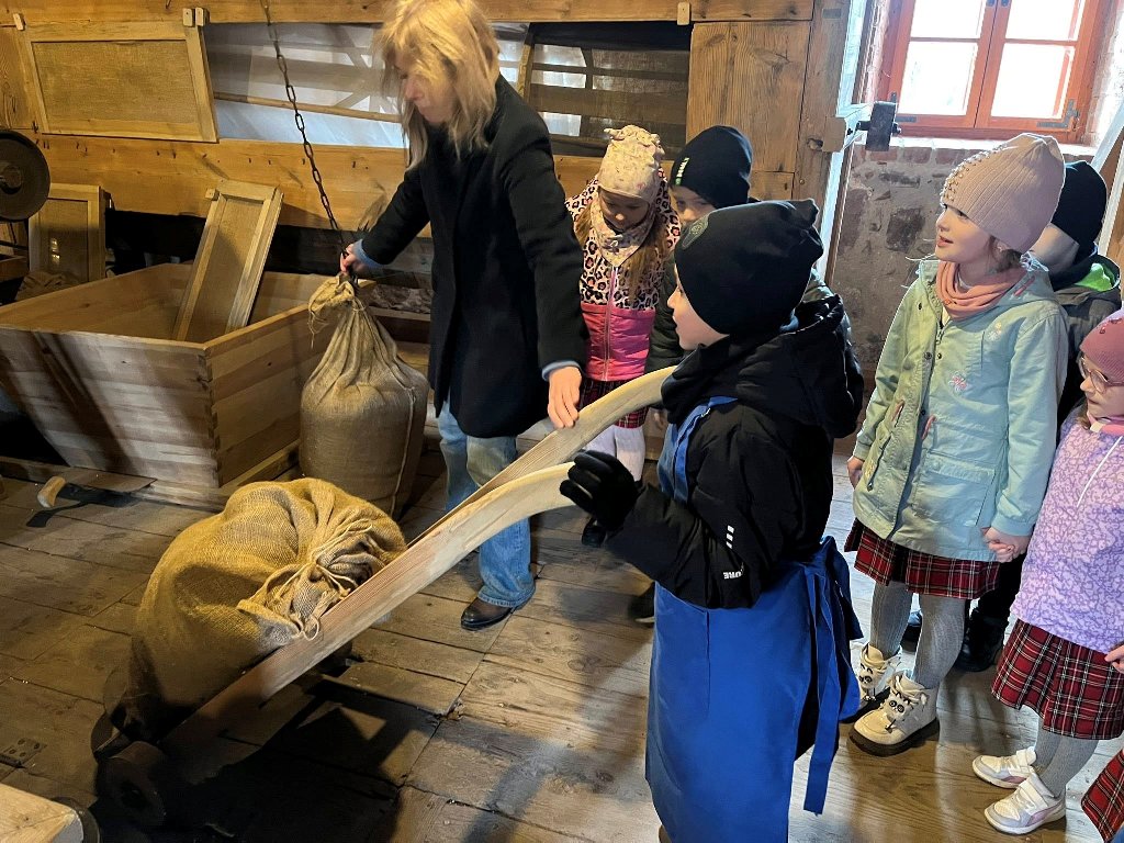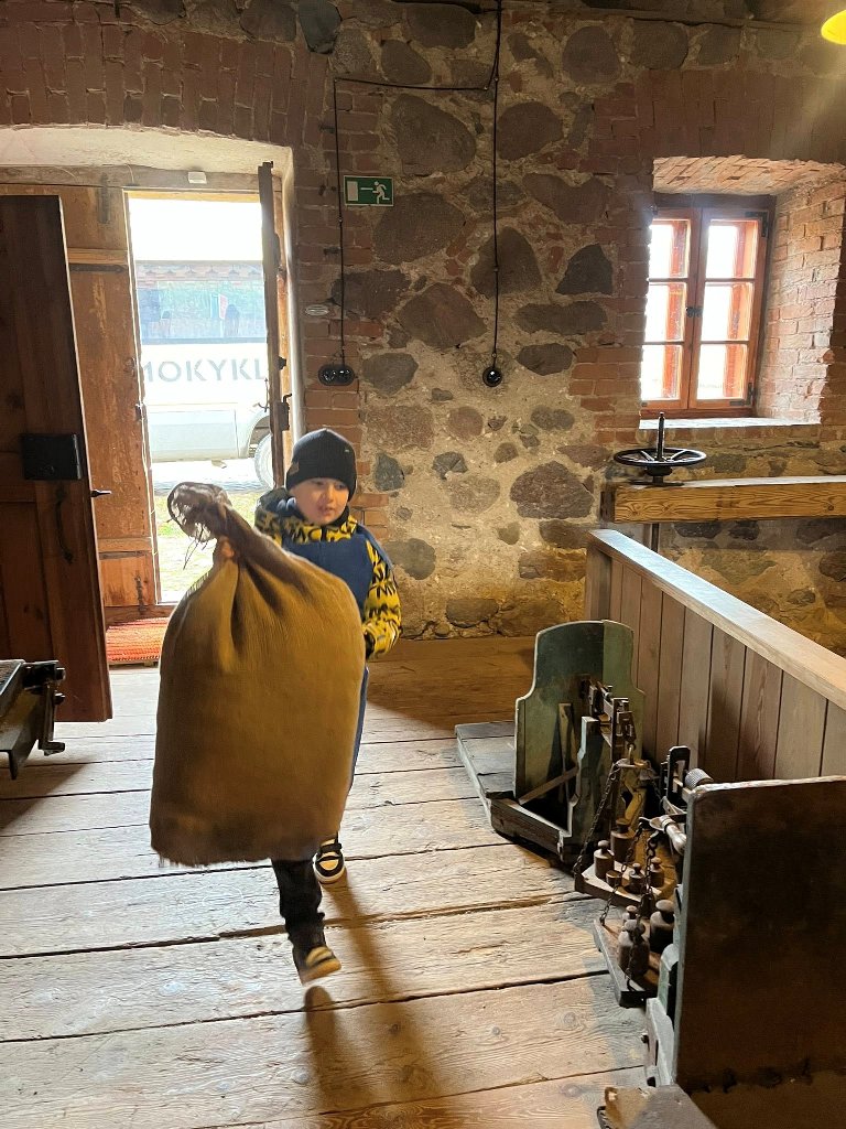 Spalio 30 dieną pirmos klasės mokiniai aplankė seną akmeninį malūną Lubavoje, kur susipažino su senosiomis technologijomis, kurios vaidino svarbų vaidmenį anuometinio žmogaus gyvenime ir jo raidoje. Mokiniai sužinojo trumpą malūno istoriją. Gidė išsirinko tarp mokinių „malūnininką” ir jo padėjėją, kurie gavo prijuostes ir maišelį su grūdais. Eidami nuo įrenginio prie įrenginio, jie atliko kai kuriuos malūnininko darbus, pavyzdžiui, svėrė grūdus, sukiojo didelį ratą, keldami maišą su grūdais ir t. t. Daug džiaugsmo vaikams suteikė tai, kad gidė juos pavaišino šviežia duona. Išvyka leido vaikams geriau pažinti malūną ir jo įrenginius. Jie sužinojo, kokius darbus turėjo atlikti jų proseneliai, kad galėtų paragauti kvapnios duonos riekelės.