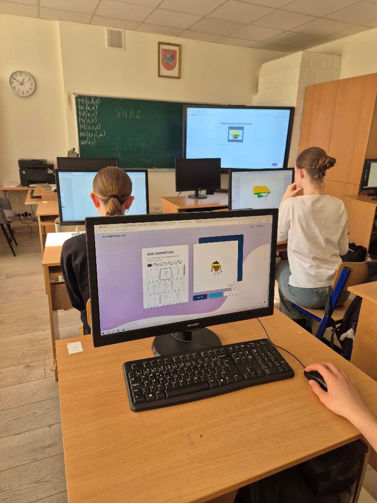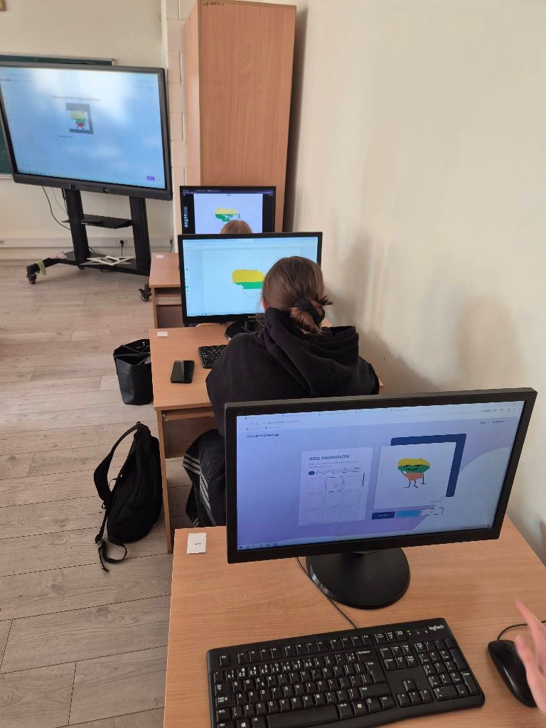 Naudodamiesi „Mentimeter“ mokiniai kūrė minčių lietaus debesį ir kiekvienas parašė po vieną žodį, su kuriuo jam siejasi Lietuva. Tarp dažniausiai pasirodžiusių žodžių buvo laisvė, namai, kalba, gamta, istorija, Vilnius.