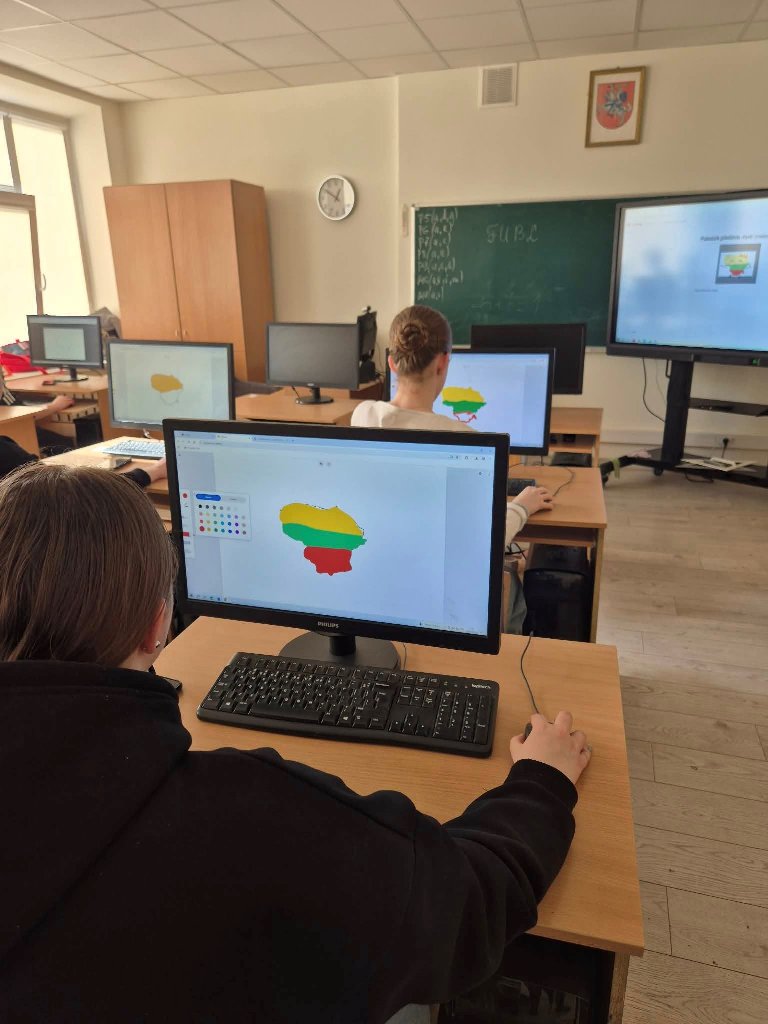 Pamokos pabaigoje mokiniai kūrybiškai pasveikino Lietuvą su dar vienu gimtadieniu – Nepriklausomybės atkūrimo diena. Jie piešė miniatiūras ir užrašė savo mintis, linkėjimus bei jausmus Lietuvai. Mažuose piešiniuose atsispindėjo trispalvė, Vilniaus simboliai, Lietuvos gamta ir vaikų linkėjimai savo šaliai.