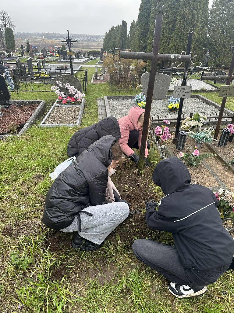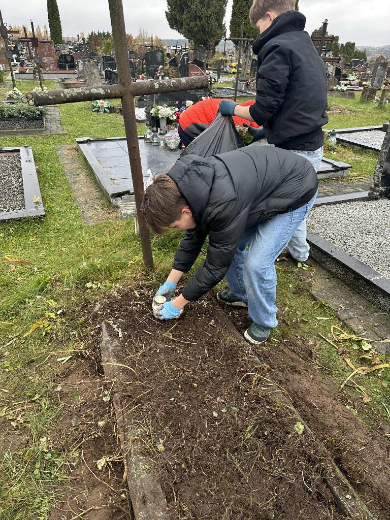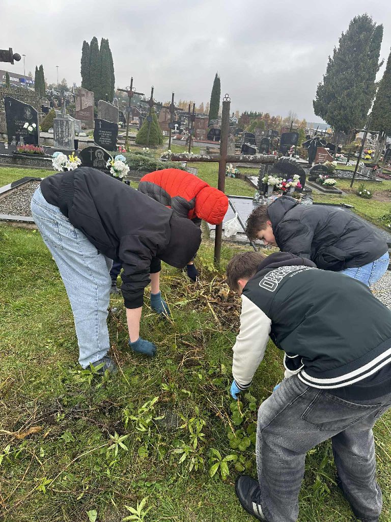 28 października uczniowie klasy 7 udali się na cmentarz, aby uporządkować groby i zapalić znicze. Był to gest pamięci i szacunku wobec zmarłych.