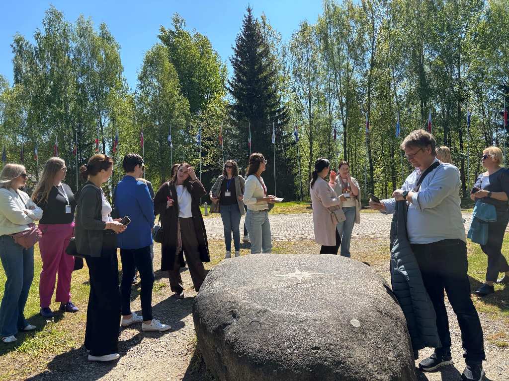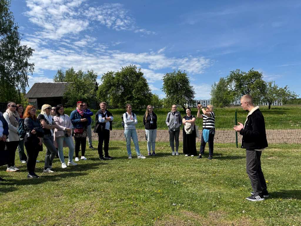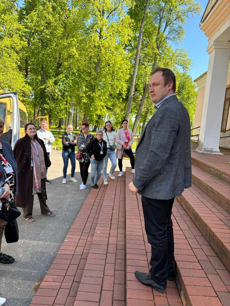 Ważnym elementem wtorkowego pobytu była również część poznawcza i kulturowa. Wspólnie odwiedziliśmy Geograficzne Centrum Europy obok wsi Purnuszki, zarejestrowane w Księdze Rekordów Ginessa, miejsce symboliczne, podkreślające wspólne dziedzictwo kontynentu. Następnie udali się do letniej rezydencji Józefa Piłsudskiego w Pikieliszkach, gdzie poznali ciekawostki z życia Marszałka, opowiedziane przez p. Leokadię. W tym malowniczym dworku odbyło się spotkanie ze starostą rzeszańskim p. Waldemarem Rynkiewiczem.