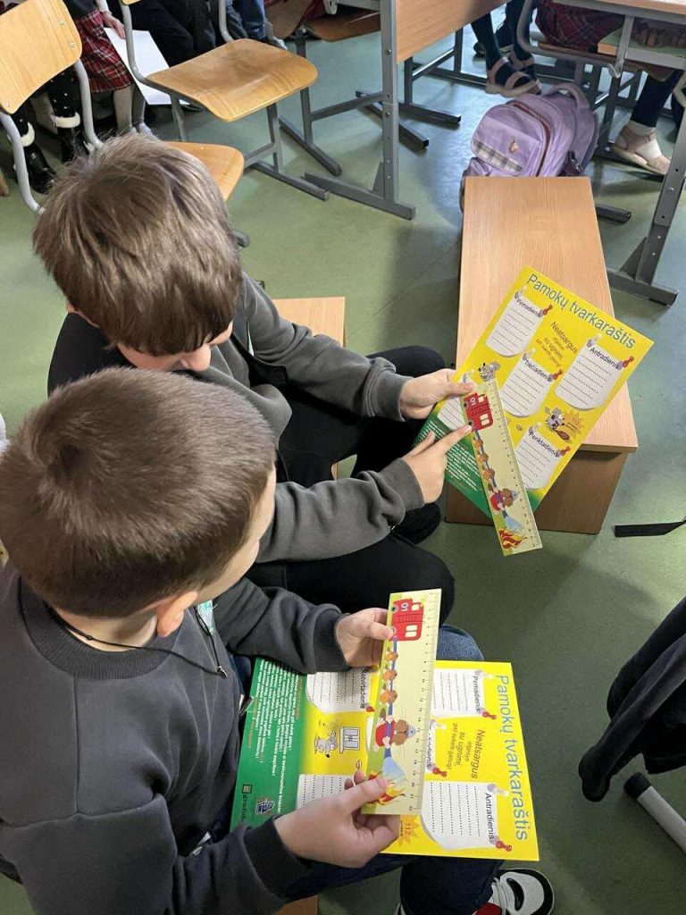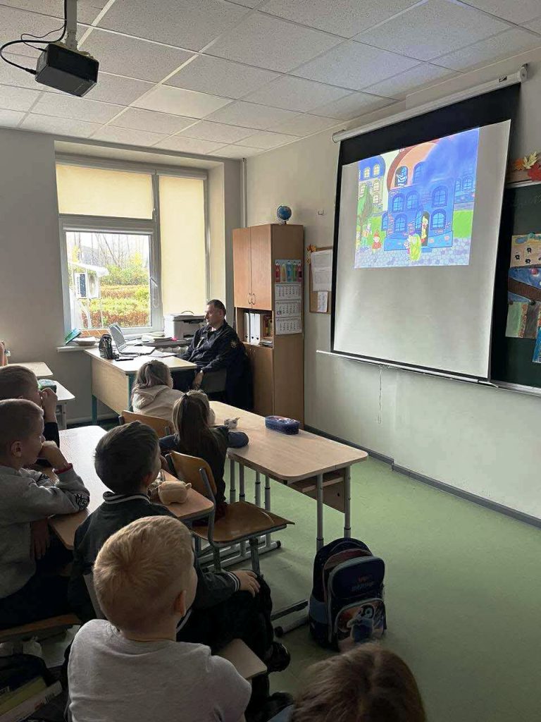 Spalio 27 diena ,1–4 klasių mokiniai dalyvavo susitikime su gaisrininku. Jie sužinojo, kokį darbą atlieka gaisrininkas ir kokios yra jo kasdienės pareigos. Mokiniai žiūrėjo edukacinius filmukus, kuriuose buvo paaiškinta, kaip elgtis kilus gaisrui ir kokiais pagalbos numeriais reikia skambinti pavojingose situacijose. Susitikimo metu mokiniai galėjo užduoti klausimus, aktyviai dalyvavo viktorinoje apie saugų elgesį, o pabaigoje gavo mažų dovanėlių – liniuočių