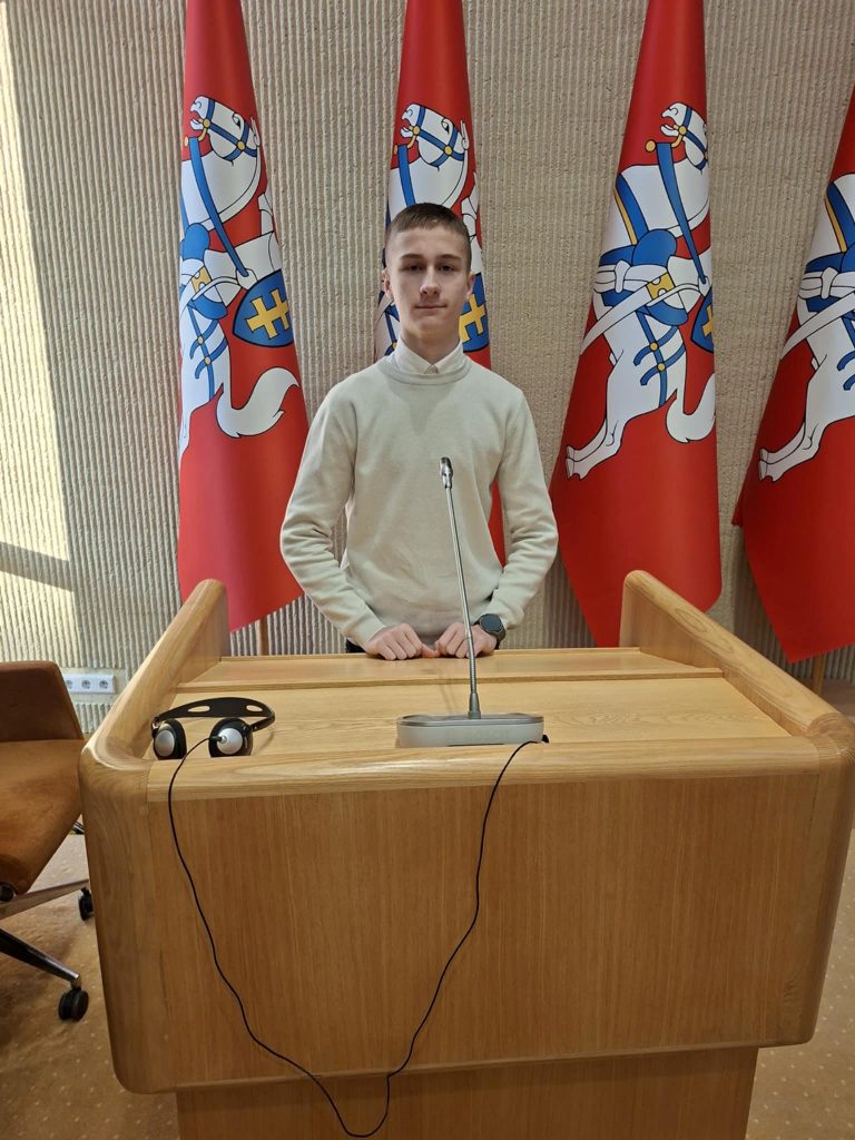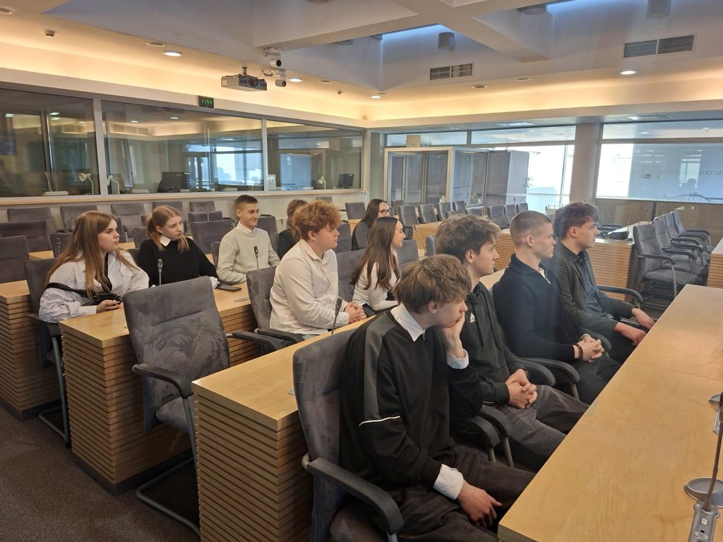 Jau tapo tradicija, kad per pilietiškumo ugdymo pamokas, nagrinėjant temą „Seimas – įstatymų leidžiamoji institucija“, 10 klasės mokiniai dalyvauja pamokoje LR Seime. Jie aplanko plenarinių posėdžių salę, sėdi parlamentarų kėdėse, spaudžia mikrofonų mygtukus, užduoda klausimus. Taip pat jie turėjo susitikimą su Seimo nariu Jaroslavu Narkevičiumi. Kartu tai yra ir istorijos pamoka.
